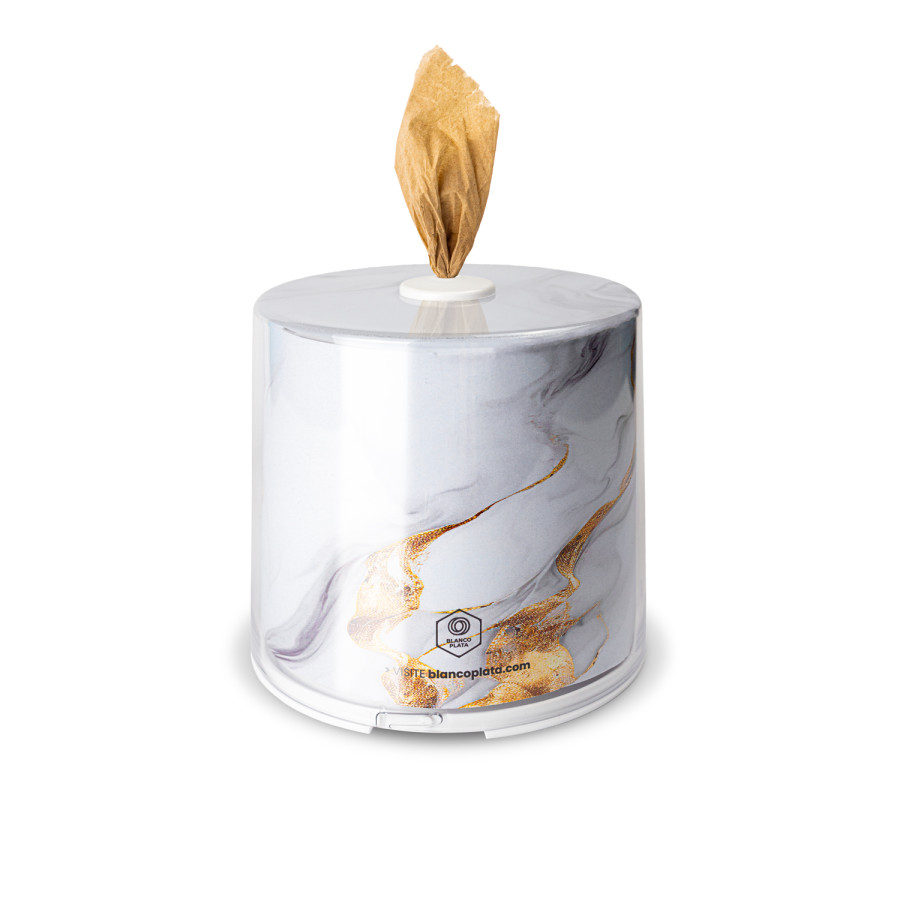 Caja para pañuelos y servilletas SoftNap de Blancoplata es un práctico servilletero o pañuelero en el que las servilletas se extraen individualmente por la parte superior. Cada servilletero incluye 400 servilletas ecológicas 100% celulosa de dos capas, suaves y absorbentes. Incluye 10 diseños diferentes intercambiables para que utilices el que más te guste o lo cambies adaptándolo a la estancia en la que lo coloques. Da un toque original a tu hogar o tu negocio, utilizalo como caja para pañuelos o servilletero. Puedes adquirir recambio en bobinas en papel celulosa blanca o papel celulosa ecológica.