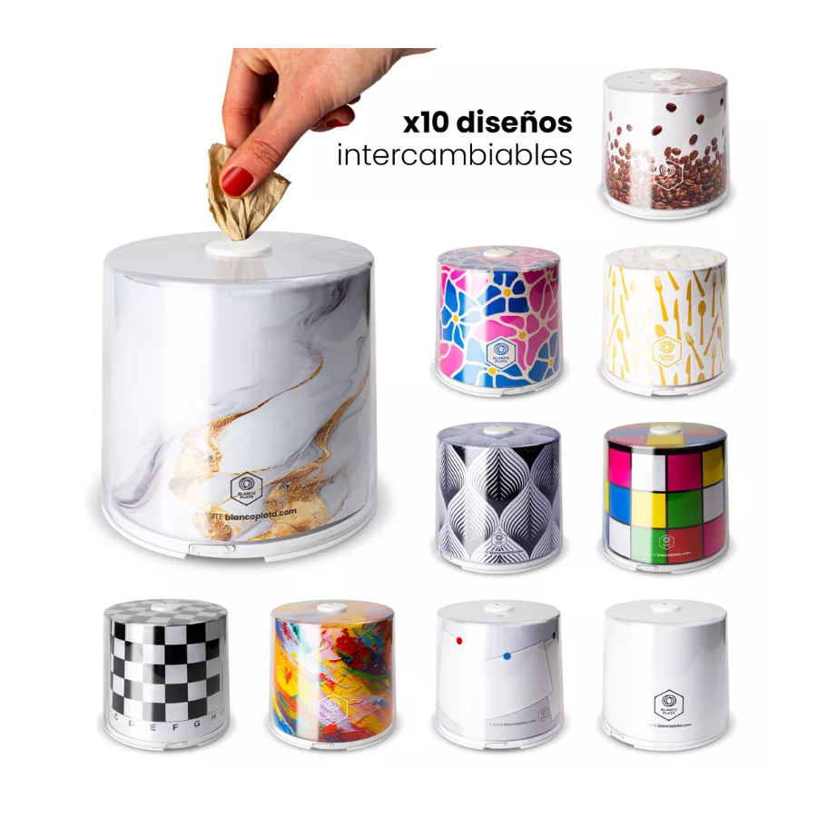 Caja para pañuelos y servilletas Blancoplata Softnap 10 diseños intercambiables incluye recambio con 400 servilletas ecológicas