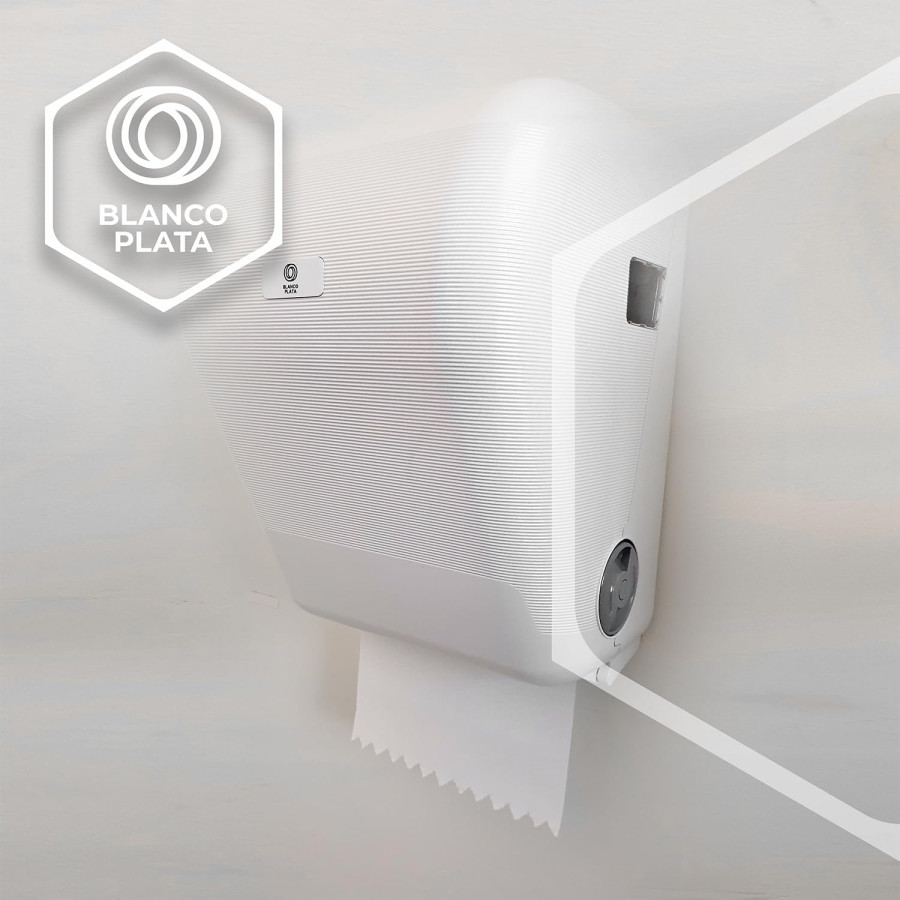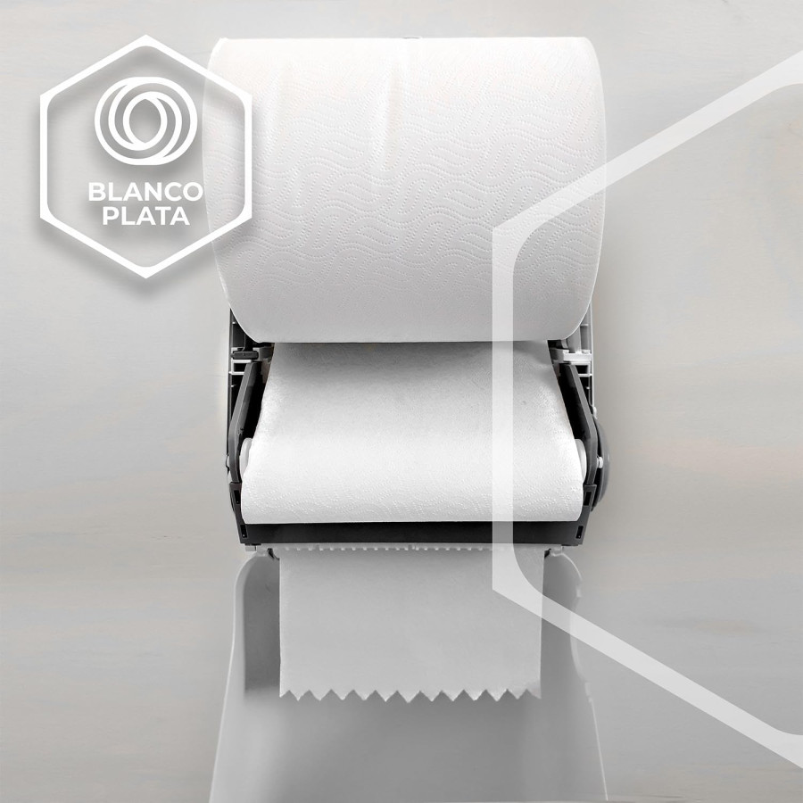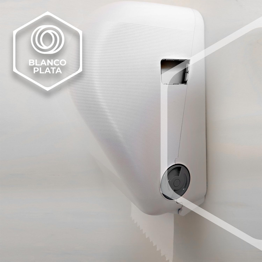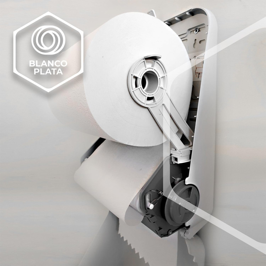 Dispensador exclusivo para la bobina autocorte 150m 2 capas cautivo Blancoplata.