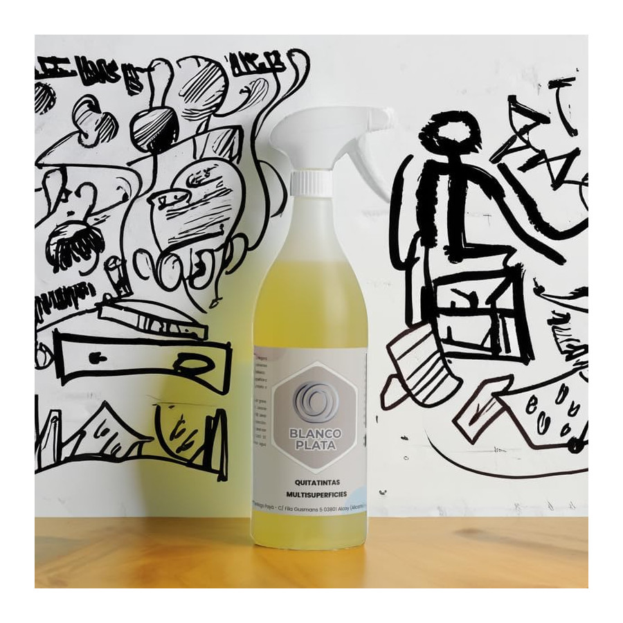 El quitatintas multisuperficies Blancoplata de 750 ml penetra en los poros de la superficie y elimina la tinta por completo. No daña la superficie a la que se aplica. Los tensiactivos y disolventes de su composición eliminan la tinta y la suciedad sin esfuerzo.
