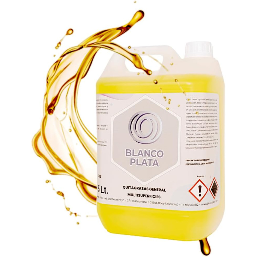 El desengrasante general multisuperficies Blancoplata de 5l es capaz de eliminar la grasa con facilidad gracias a sus tensioactivos y disolventes que son capaces de levantar la grasa más pegada. Penetra en los poros de la superficie a la que se aplica alcanzando los sitios más complicados en los que se puede acumular la grasa.