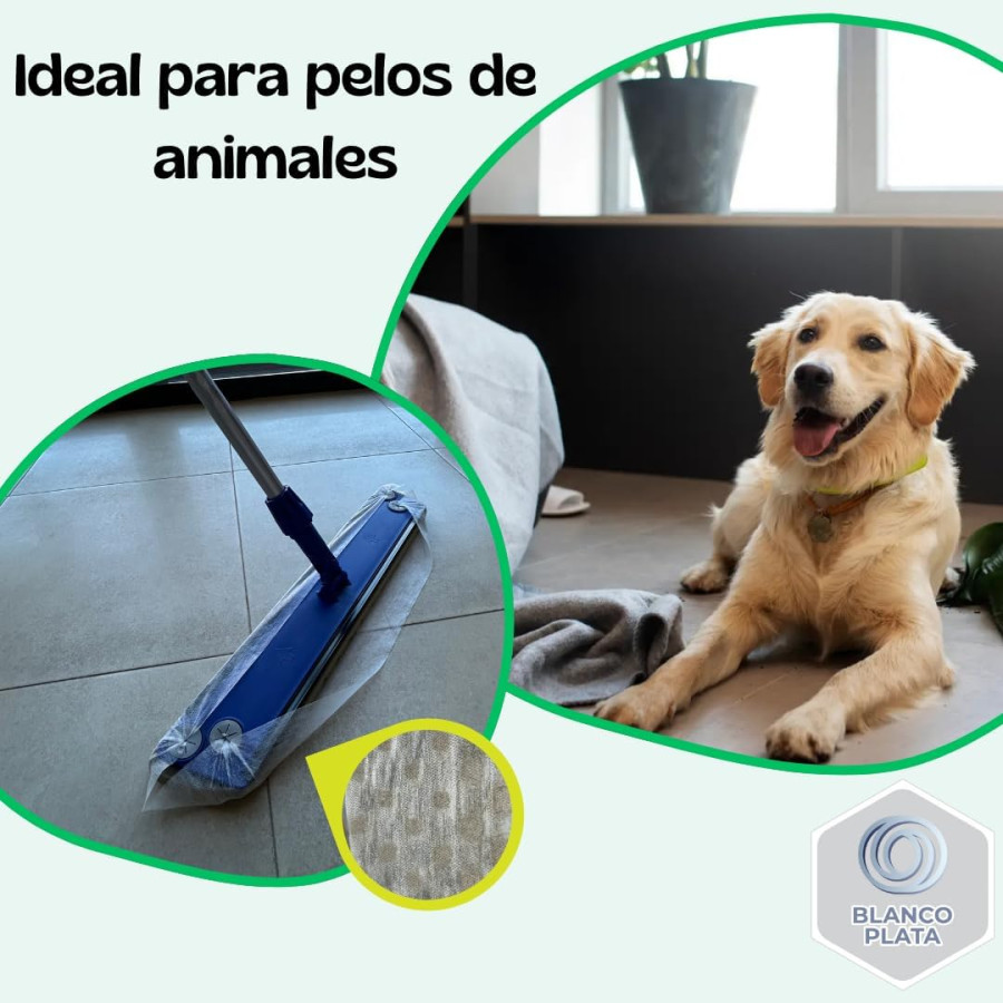 PACK SOPORTE+PALO+ RECAMBIO 50 GASAS ATRAPAPOLVO+12 GASAS MICROFIBRA LIMPIEZA EN HÚMEDO BLANCOPLATA