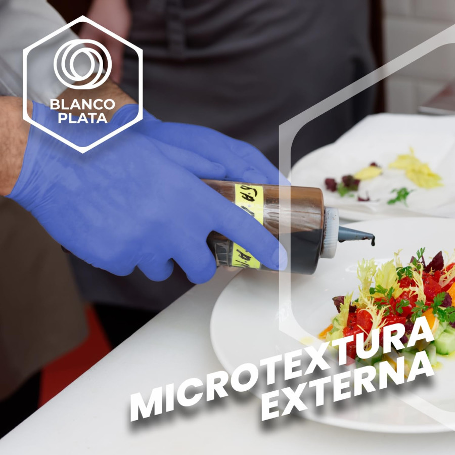 Guante de nitrilo azul sin polvo Sensitive talla grande. Cajita en 100 unidades. Gramaje de 3,5gr en talla mediana. Guantes aptos para la manipulación de alimentos, tareas de limpieza de locales o materiales. Puño con reborde reforzado que facilitan su extracción. Guantes muy sensible al tacto y elásticos para un perfecto acople a nuestra mano sin oprimirla. Apto para el contacto con todos la alimentos. No contiene látex.